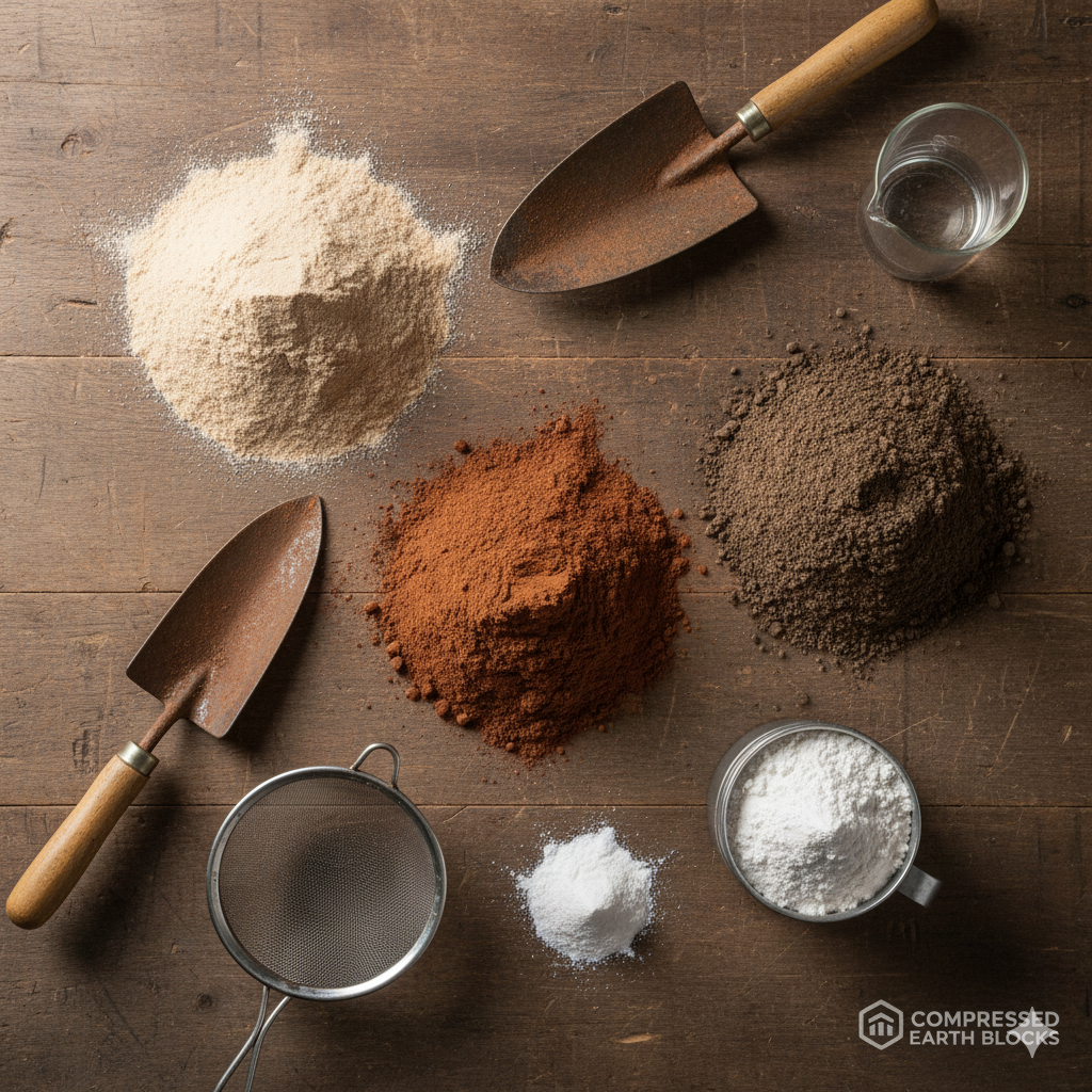 Soil (sand, clay, silt, sometimes with stabilizers like cement or lime) is moistened, poured into a steel mold, and compressed under high pressure into dense, solid blocks or bricks.